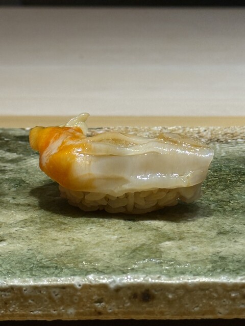 初めて食べたざる貝、握り立ての貝はまだ活きていて、磯の味とクリーミーな味わいが美味しかった〜♡