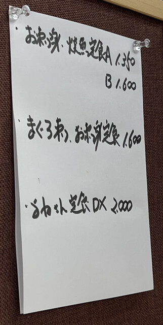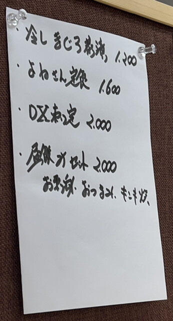 店内左側の厨房内にあるメニューを見ると、今日もDX刺身定食はなし
