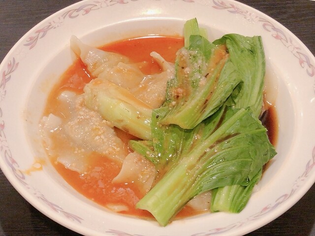 ランチの定食はスープ、サラダ、ザーサイ付き。