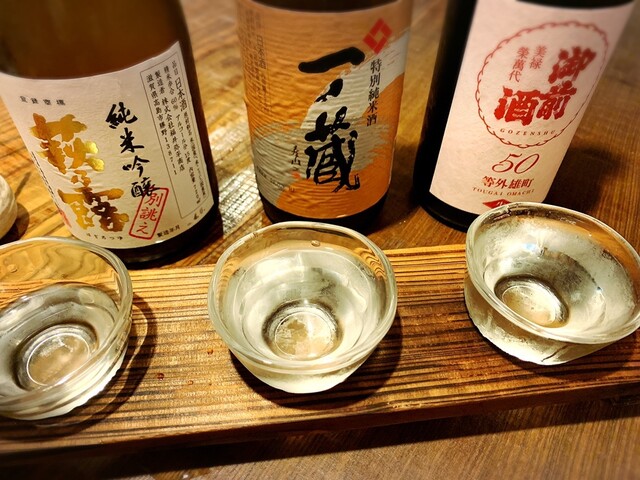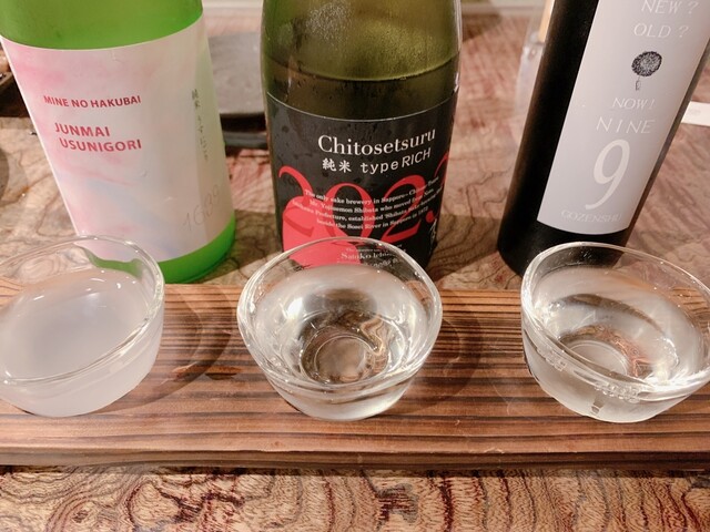 日本酒3種飲み比べも注文しました。その日によって日本酒の種類が違うのでいつきても違うものが飲める。日本酒に詳しい店員さんがいるので丁寧に毎回教えてくれます。お酒を愛していることが伝わります。