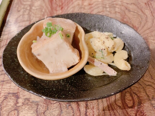 お通しも手抜きなしです!ガリサバとさつまいもサラダ。ガリもサバもあまり得意ではないのにあまりの美味しさに声が出てしまう。ガリも甘さを感じたし、サバには脂がたっぷりで相性抜群。ビールが進む!