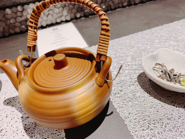 ミディアムレアの黒毛和牛ステーキ登場です。当たり前かもしれませんが柔らかく、甘いです。薬味として醤油をメレンゲにして冷やしたという人生初の出会いをしました。あとは黒胡椒、岩塩、わざび。わさびが苦手な私ですが、少量つけて食べてみるとお肉の甘さとわさびのツンとした感じが美味しく感じました!