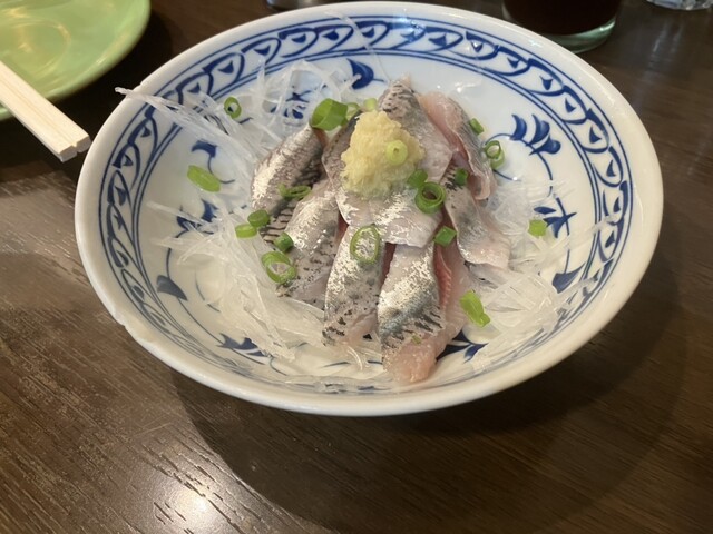 既に結構お腹はいっぱいだったが、前回訪問時に絶品だった「マグロ中落ち」と、女将さんにオススメを聞くと「今はイワシが脂が乗ってるよ」との事なのでソレを、お酒はホッピー黒で。