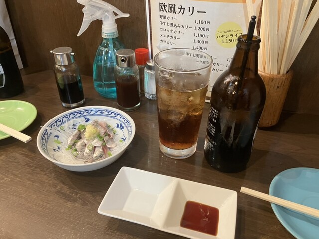 以前「お刺身が絶品だから…」と娘を誘い、週末に伺った時は「週末はカレーのみで刺身は平日夜だけ…」と女将さんに言われ、スゴスゴと退却した。