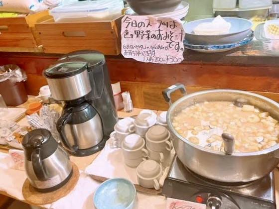 持ち帰りもできる惣菜が日替りで棚に並んでいる