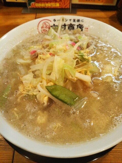 中村商店さんのラーメン屋のタンメンは、確かに一般的タンメン風ではありますが、それよりはワンランク上のスープですね。野菜の旨味を含んだ塩味、洗練された鶏系のスープが堪えられません。麺は平打ちの中細麺。中村商店さんの定番ですね。麺へのこだわりが感じられる平打ち。コシ、歯応え、旨味、いつもながら大変美味しい麺です。野菜と共に玉子も一緒に炒められており、絹さやが添えられています。タンメンの原型を残しながら中村商店さんならではの工夫で、一層の美味しさが実現されています。