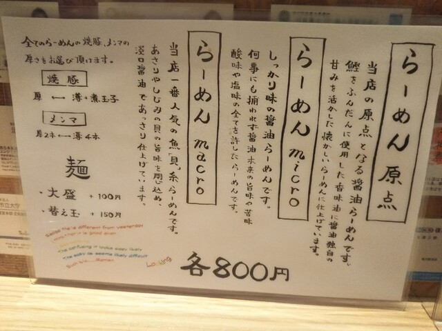 macroの貝の旨味は、非常にしっかりしていて、スープの中で貝の主張があります。これが大変良い塩梅です。麺も太麺、ふすま入り。いや茹で加減も良い。何よりこのスープでこの麺で、という設計思想と言うか、企画力と言うか、まあともかくそうしようと思って、ここに至ったのが素晴らしい。