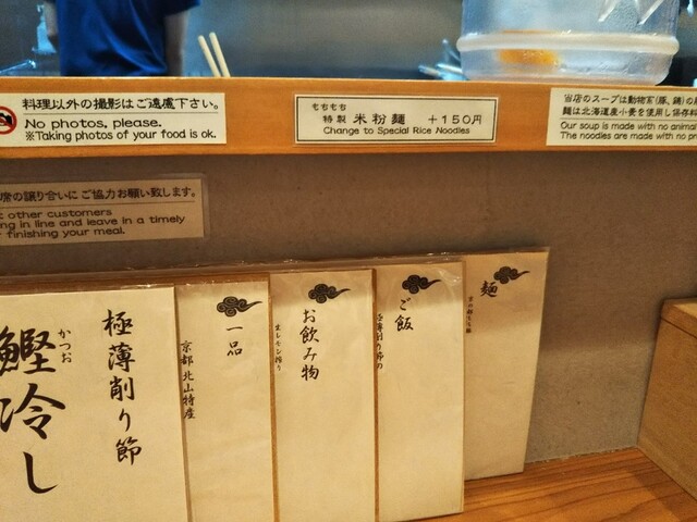 スープは、やさしい旨味と甘味のあるかえしで、大変美味しいです。カウンター越しにプロセスを拝見しました。ラーメン一杯分の鰹節をその都度削り、ベースのスープにたっぷり投入し、わずかな時間で濾してしまいます。納得の味と香りをまとわせるのは、鰹節の一番出汁の技法ですね。