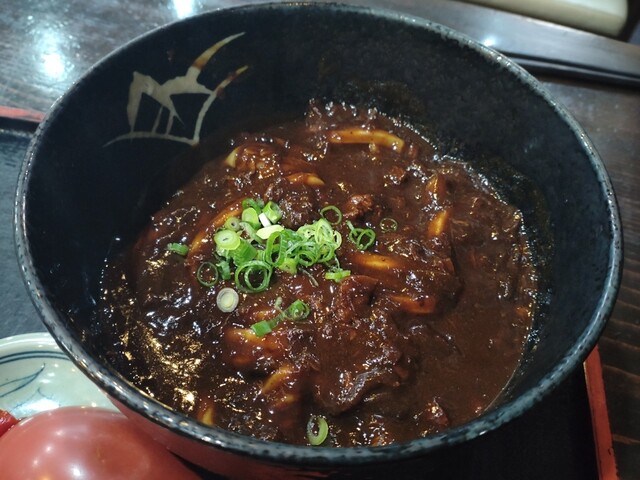 カレーうどん…ひやあつで食べると甘みが増す気がしました!少しぬるくなるのでスルスル進む〜