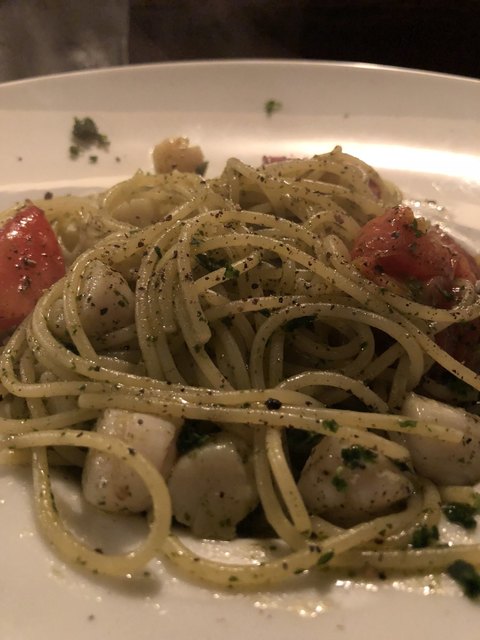 ホタテとフレッシュトマトのバジリコソースのパスタ