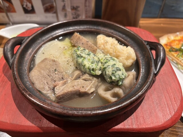 焼き野菜の香ばしさと、厚切りベーコンの旨みが相性抜群。温かいサラダというのも冬らしくて良いです。
