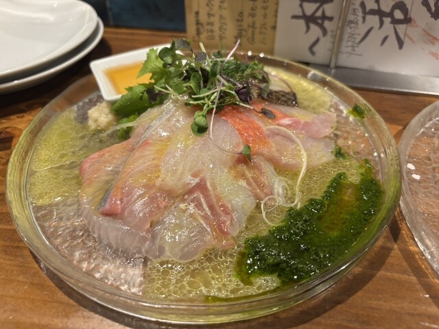 鶏パッチョ(信玄鶏レバー&ハツ、稲垣さん名古屋コーチンムネ)