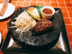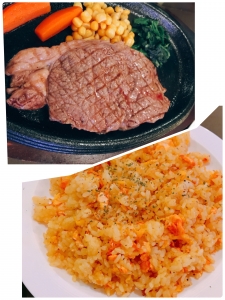 ●ステーキ丼は最初にご飯の量を聞かれるのですが、少なめにお願い