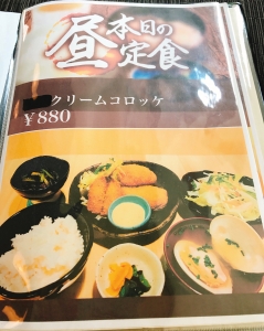 メニューは迷いました。クリームコロッケはお味噌汁の貝が大きくて