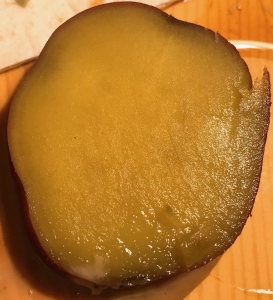 ありません。しかもツヤがあり、噛むと柔らかく簡単に崩れるのに、