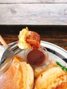 パンケーキにチョコフォンデュはオススメです。