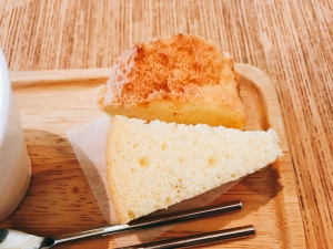 よくあるシフォンケーキはクリームとか付けないと素っ気ない味ですが、ここのシフォンケーキは何も付けなくても美味しいです。