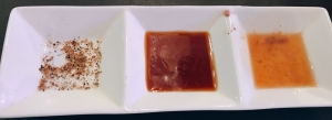 お肉に付けるたれはお好みでと3種類置いて行かれました。