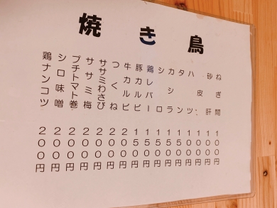 メニューが焼き鳥と自家製ピザの他は壁に張り出されている。