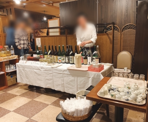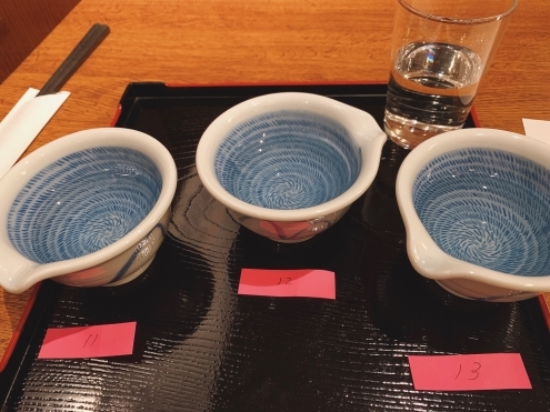 お水はセルフ、おちょこは好きなのを持ってくる。
