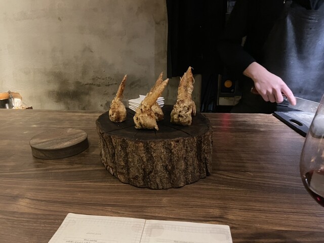 次は『炊いたうなぎ』に『蕗のとう』でフライドチキン仕立て?出来上がりは『フライドチキン』一口食べると口の中に『うなぎ』の味。『蕗のとう』の香り。どう創作しているのか?すごい。