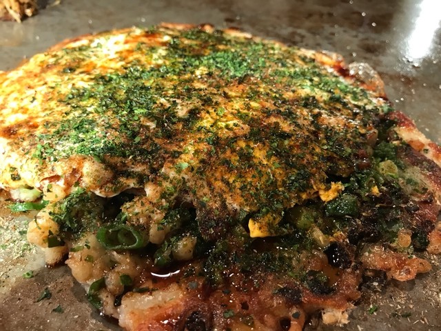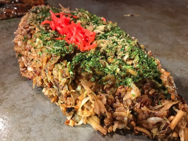 パンチのある店構えと異なり、お好み焼きは野菜たっぷり、生地少なめのヘルシー志向。