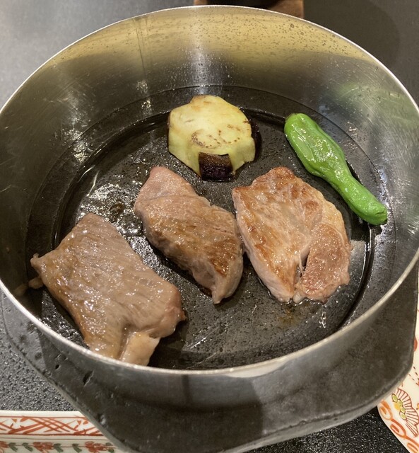 ・但馬牛ロースの石焼き:柔らかく、肉の旨みがギュッと詰まっていて感動的な美味しさ。