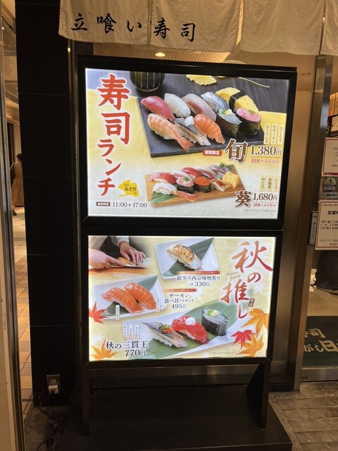 立ち食い寿司は、カンターの中の職人さんとの会話も楽しい。