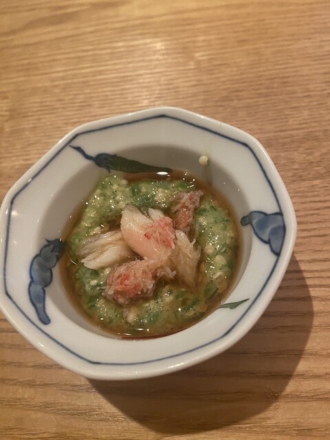 後藤醸造で軽くツマんでいたので、ツマミはいぶりがっこポテトサラダとお通しのオクラのたたき。お通しがまた美味しい。お通しが美味しいとその日のお店セレクト成功と思えて毎回嬉しいです。