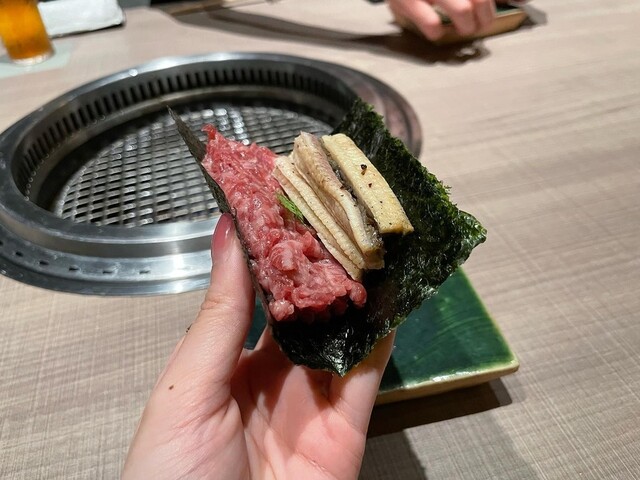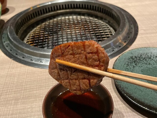 強めに片面焼いた方が肉の旨味が出る。脂が美味しい。