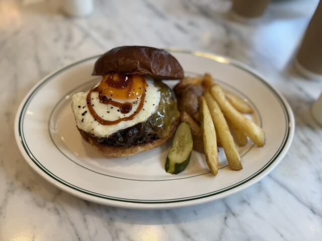 お店で一番人気というこちらのバーガーをいただきました!和牛パティおんいしいいい。もう好きな具が全部入ってる!