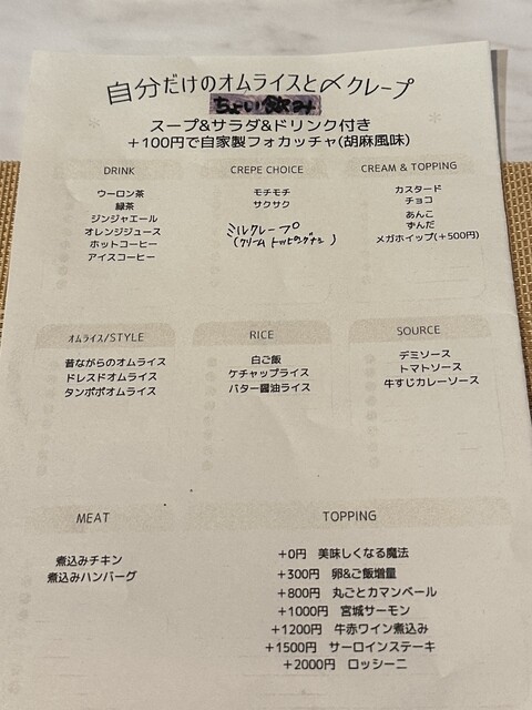 好みと気分で選べるオムライスやクレープ、楽しいです。