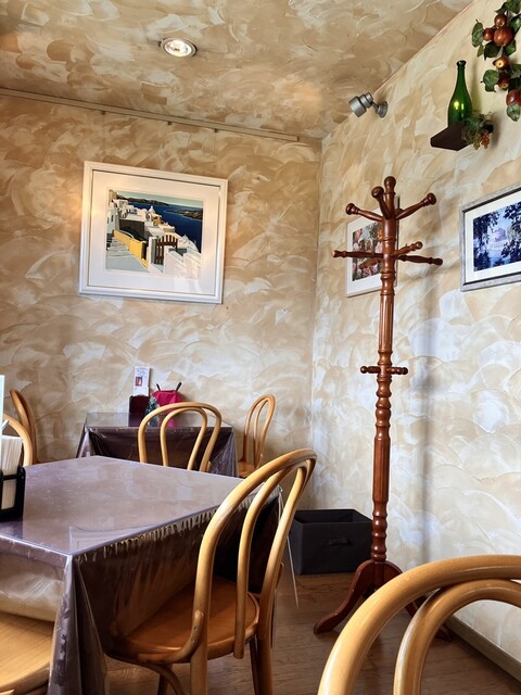 可愛らしい入り口に思わず足を止めてしまう小さなイタメシ屋さん。店内はこぢんまりとしていて、壁の絵もとても素敵。テーブル周りに飾られた小物も一つ一つ凝っていて、眺めているだけでも楽しいひと時が過ごせます。