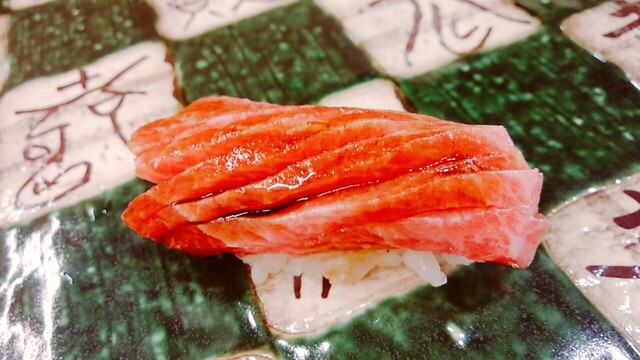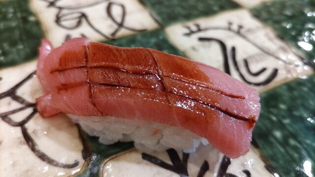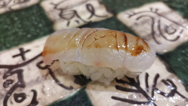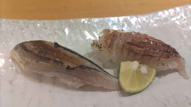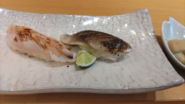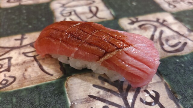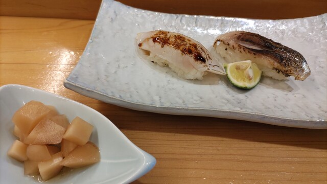 熟成して炙ったお鮨は、香ばしさとシャリとの一体感でとろける美味しさです。