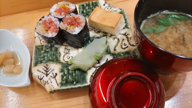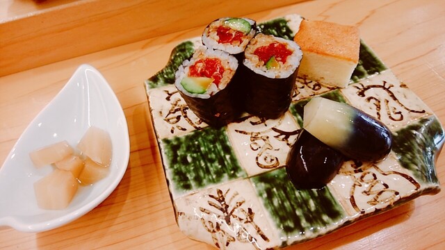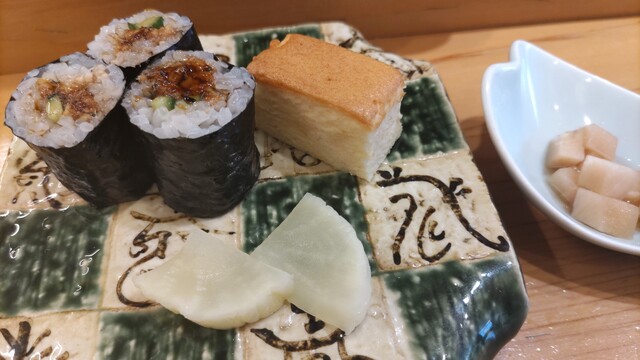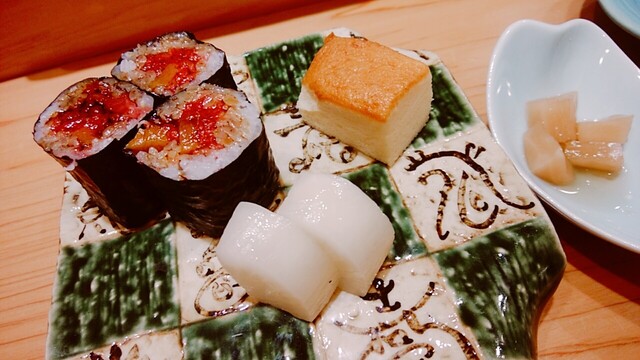 ネギトロ巻き、カステラ玉子、べったら漬け