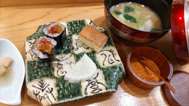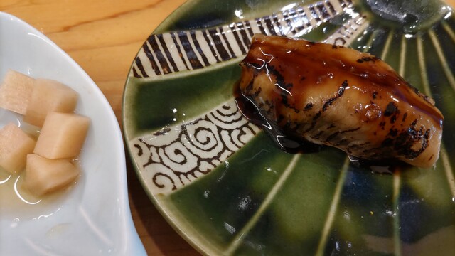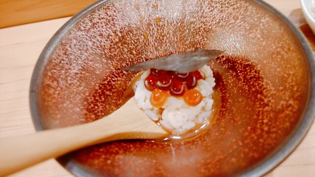 毎回唸ってしまいますが、淡白な白身を食材だけでなく、個体毎に適切に熟成させ、深い旨味が長く口の中に続く感じは秀逸と思います。ミョウバンを使わない塩水雲丹やこの時期だけ提供される筋子より丁寧に下ごしらえされたイクラ、鮪のレベルの高さ、とろける炙り鮨・・・と大満足な逸品が続きます。