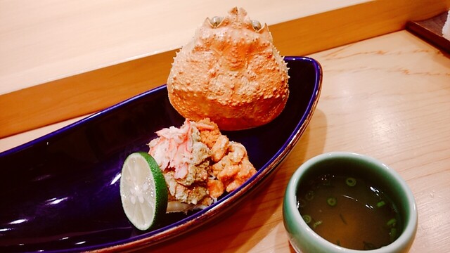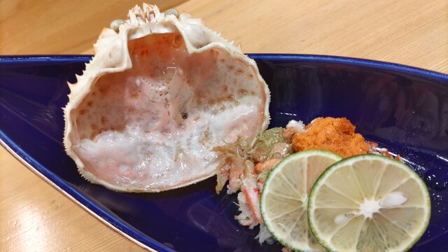 今回の蟹まるごとのお料理は、内子、外子、ほぐし身、蟹足、蟹みそと見た目も豪華で、とても美味しく、夢中で食しました。