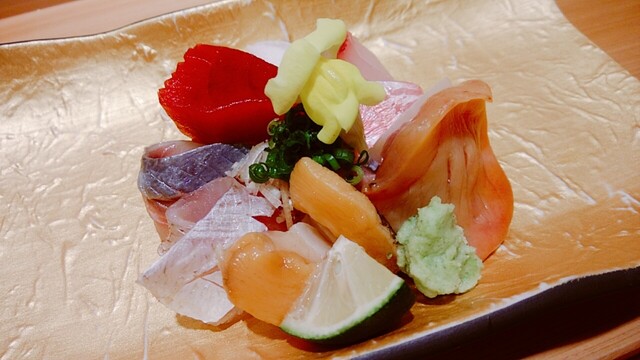 お刺身盛り合わせは、仕入れにより変わると思いますが、赤身、白身、光物、貝が7~8種類提供され、色々な味や食感を堪能出来、楽しさも加わります。