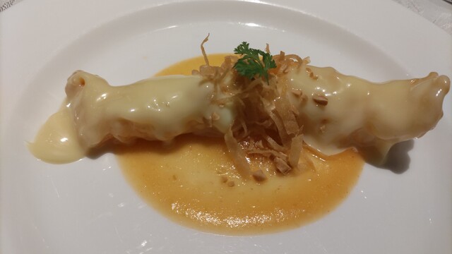 やはりメインはふかひれの姿煮です。食感や味はとても美味しかったのですが、以前の食した夜の大ふかひれの姿煮と比較するつもりはありませんが、イメージや記憶が自分の中で膨らみ過ぎているのかもしれませんが、濃厚さが少し感じられないように思いました。