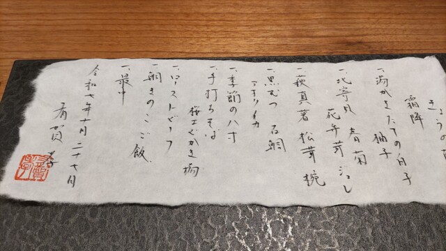 優しい味付けで出汁の深みが感じられ、染みわたる美味しさがとても良かったです。加えて、お料理によって、洋の要素を取り入れたり、炭火の香りをプラスしたり、ひと捻り、ふた捻りした創意工夫により、変化も感じ、お料理をより格上げしていると思います。