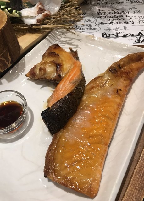 大好きなサーモンのハラス。甘い脂ノリノリを大根おろしと一緒に。