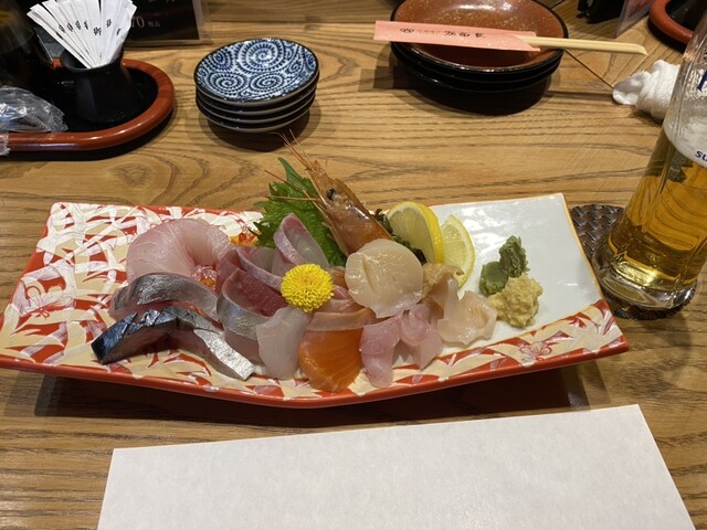 カウンターで食べました。カウンターだと調理したものを大きなしゃもじみたいなものに乗せて提供してくれます。写真は1人前の刺盛りですが、2-3人前のものは、舟盛りみたいな感じでした。