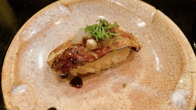 前菜、鯨のさえずり、からすみとイカ刺しとウニ、炙り中トロ、白味噌とイチジク、(忘れました)、大トロ、イカ、ウニ、赤貝、カキを煮て炙ったもの、コハダ、イワシ、(忘れました)、クルマエビ、フォアグラ、ウナギ、(忘れました)、オクラ、ハマグリのお吸い物、モモと冷凍ブドウでした。