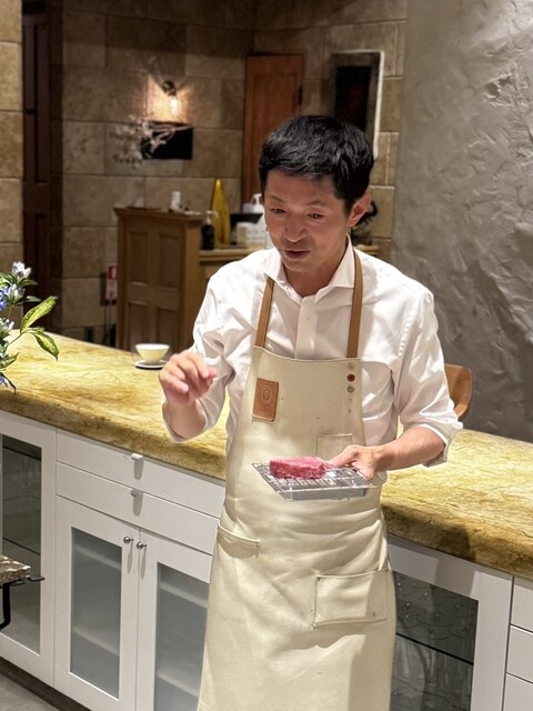そして食後、期せずして始まった髙山シェフによる料理教室(笑) 「美味しい牛肉の焼き方」ーー!パチパチー♪