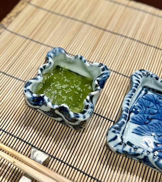 擦り立ての蓼に柔らかい酢がちょうどいいので、鮎を食した後も、卓上に残しておいてもらいました(^^)