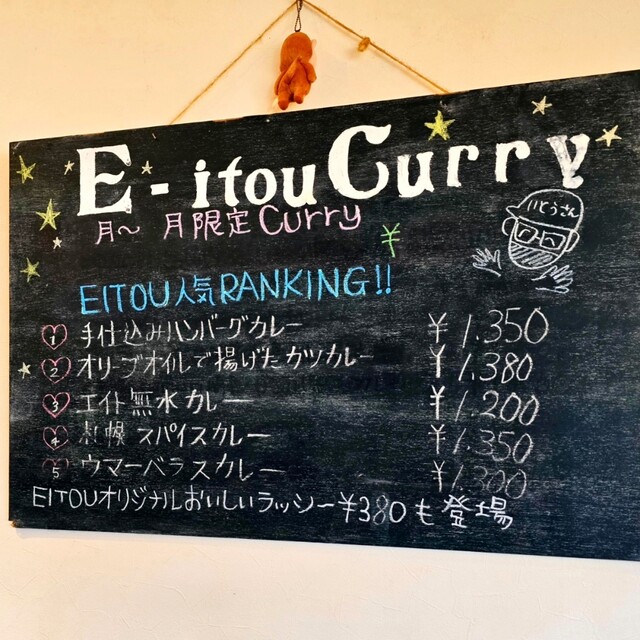 基本のカレーは元祖伊東さんのカレー、スパイシーカレーとエイト無水カレーの3種類、バリエーションも豊富です(あいがけも出来ます)