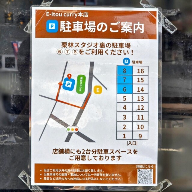 駐車スペースはお店左手に2台(未舗装で傾斜あり)…だけでしたが新しく中の島通を挟んだ場所に3台分追加されてましたGOODです!