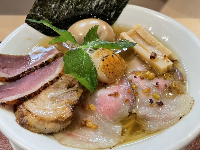 金色貝ラーメン。まずはスープの上品なこと。味がしっかり付いているのにさっぱり&出汁の奥深さを感じる透き通ったスープ、最高でした。