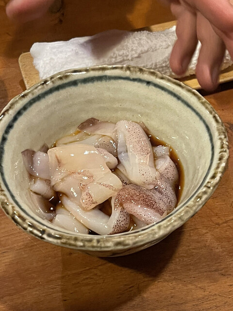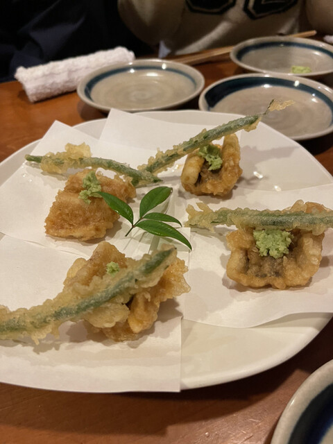 お刺身と生牡蠣と白子ポン酢は氷の上で冷やされている