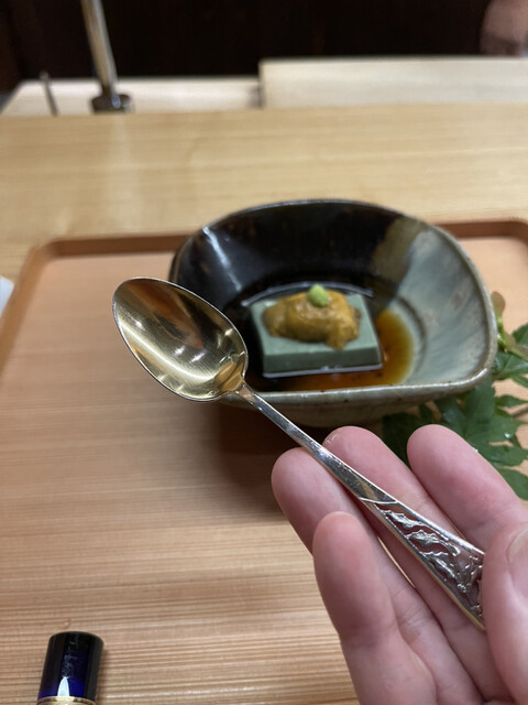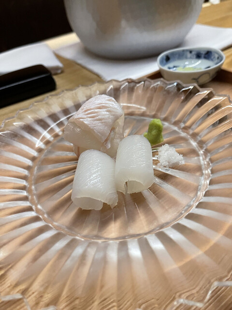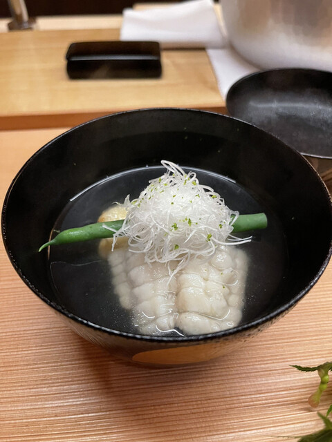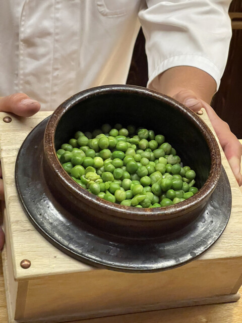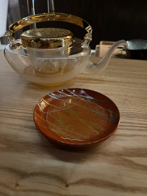 お料理が始まるまで青いうめを甘く漬けたものをいただく